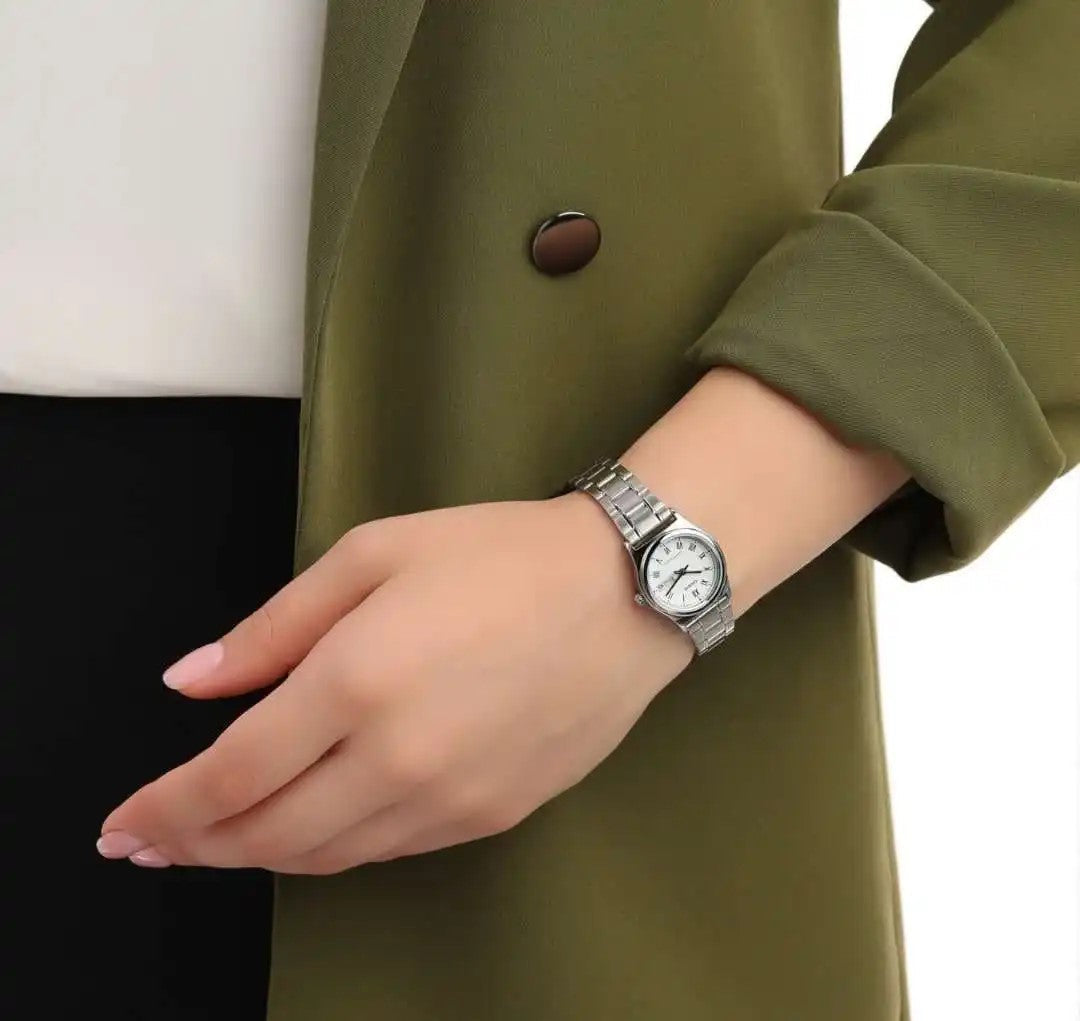 Casio Women's LTP-V006D-7BUDF 30mm Chrome Plated Case - Stainless Steel Band